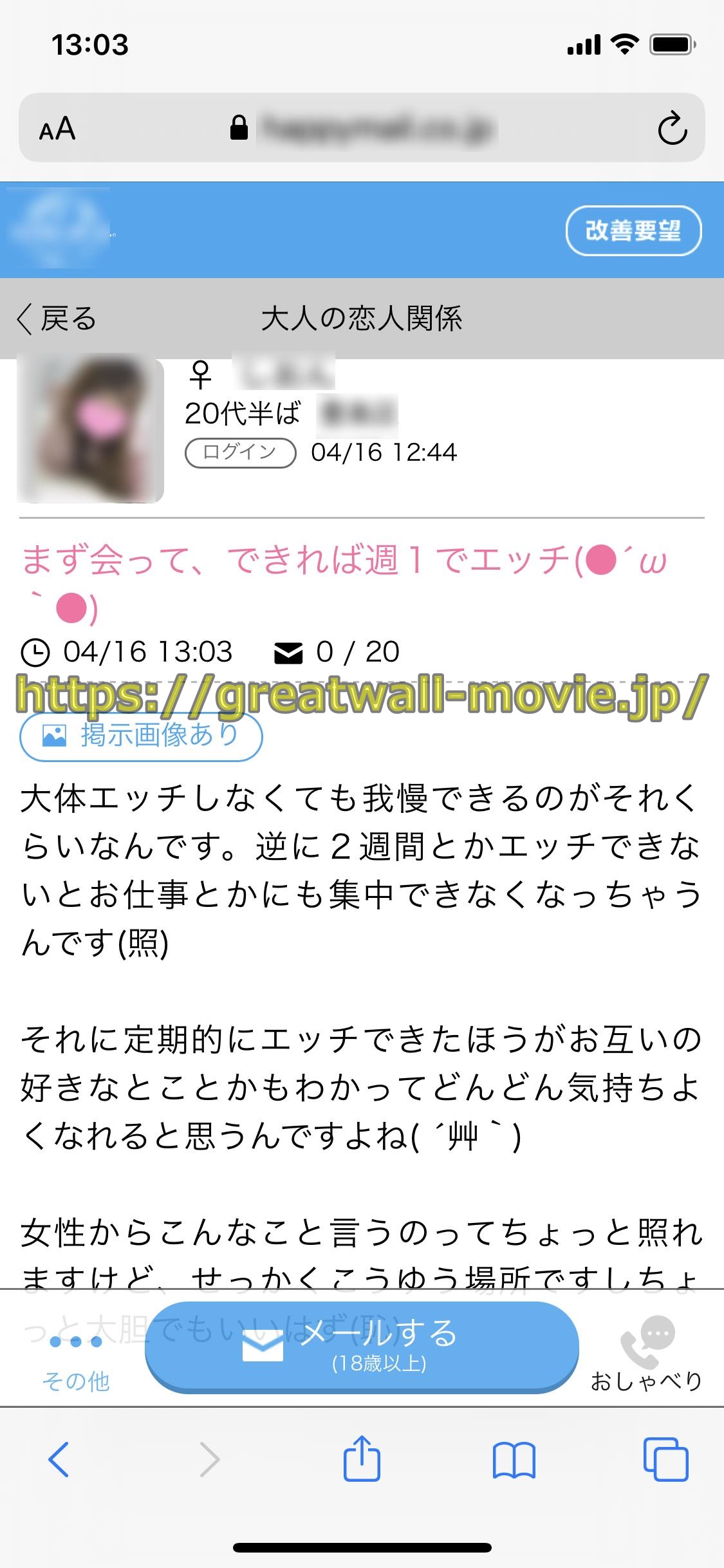 また清楚で激カワの彼氏持ちの女子アナウンサーの洋子さんは、出合い系コミュニティのハピメの「大人の出会い」の掲示板で