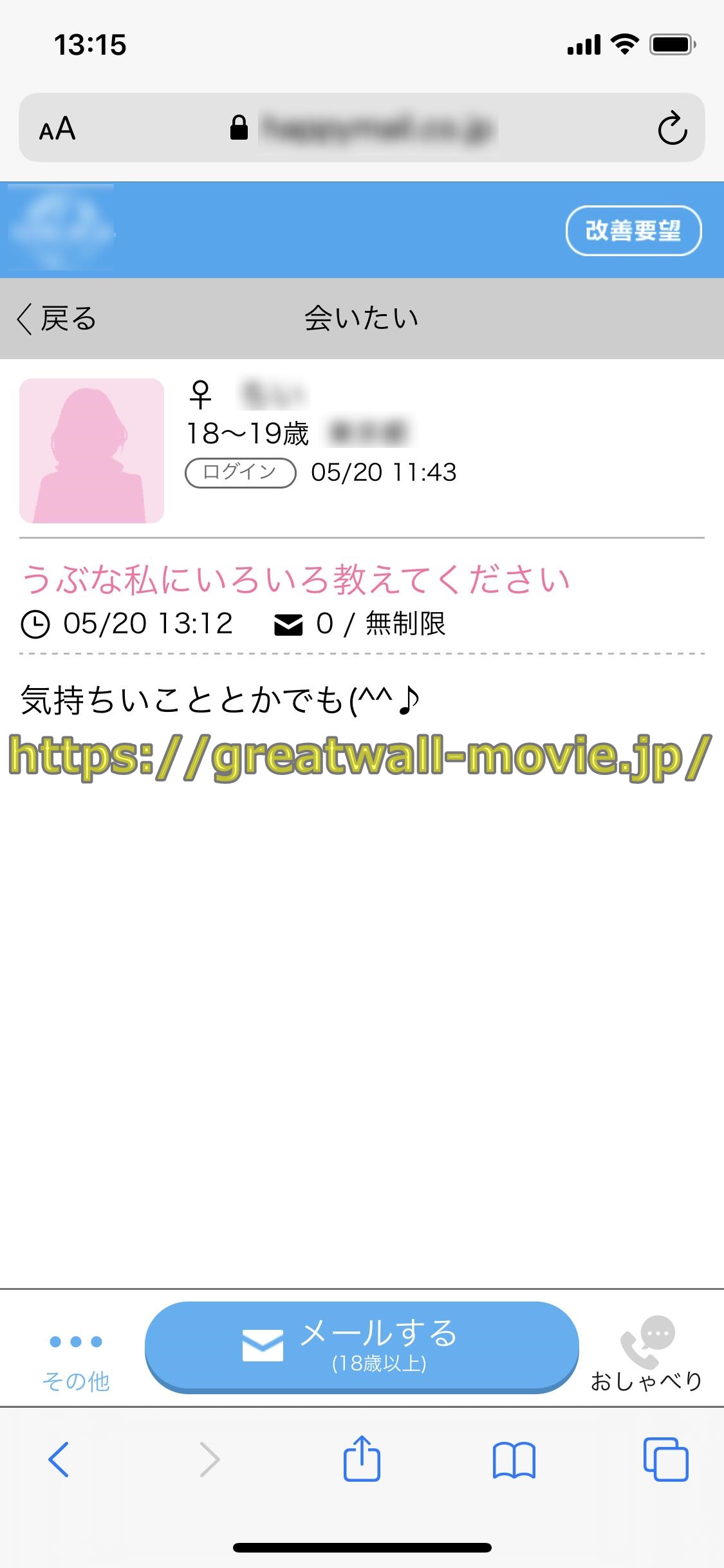 というカキコされたばかりで、まだ誰からもメッセージがきてない投稿をめっけたので、すぐ