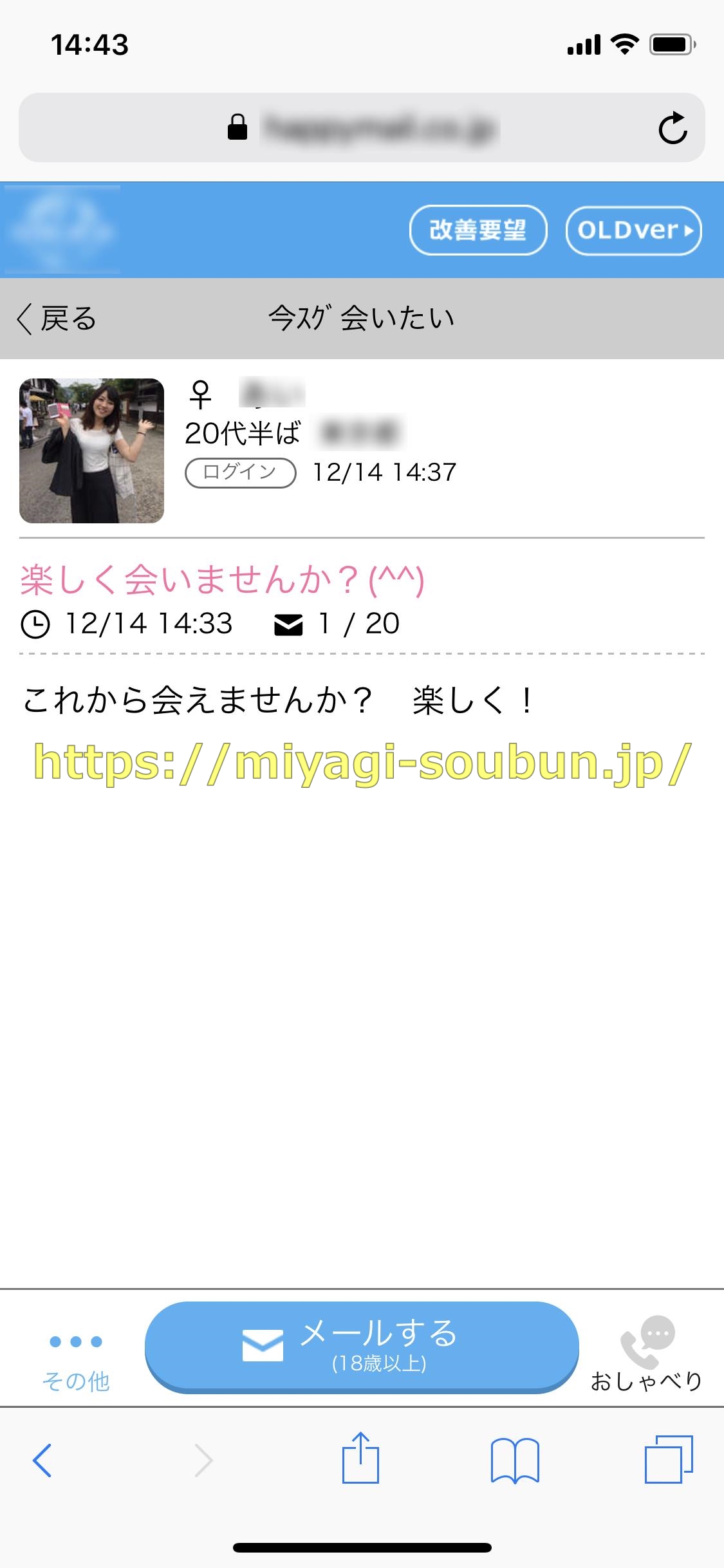 という書き込みされたばかりで、まだ誰からもメッセージがきてない投稿を発見したので、直ちに