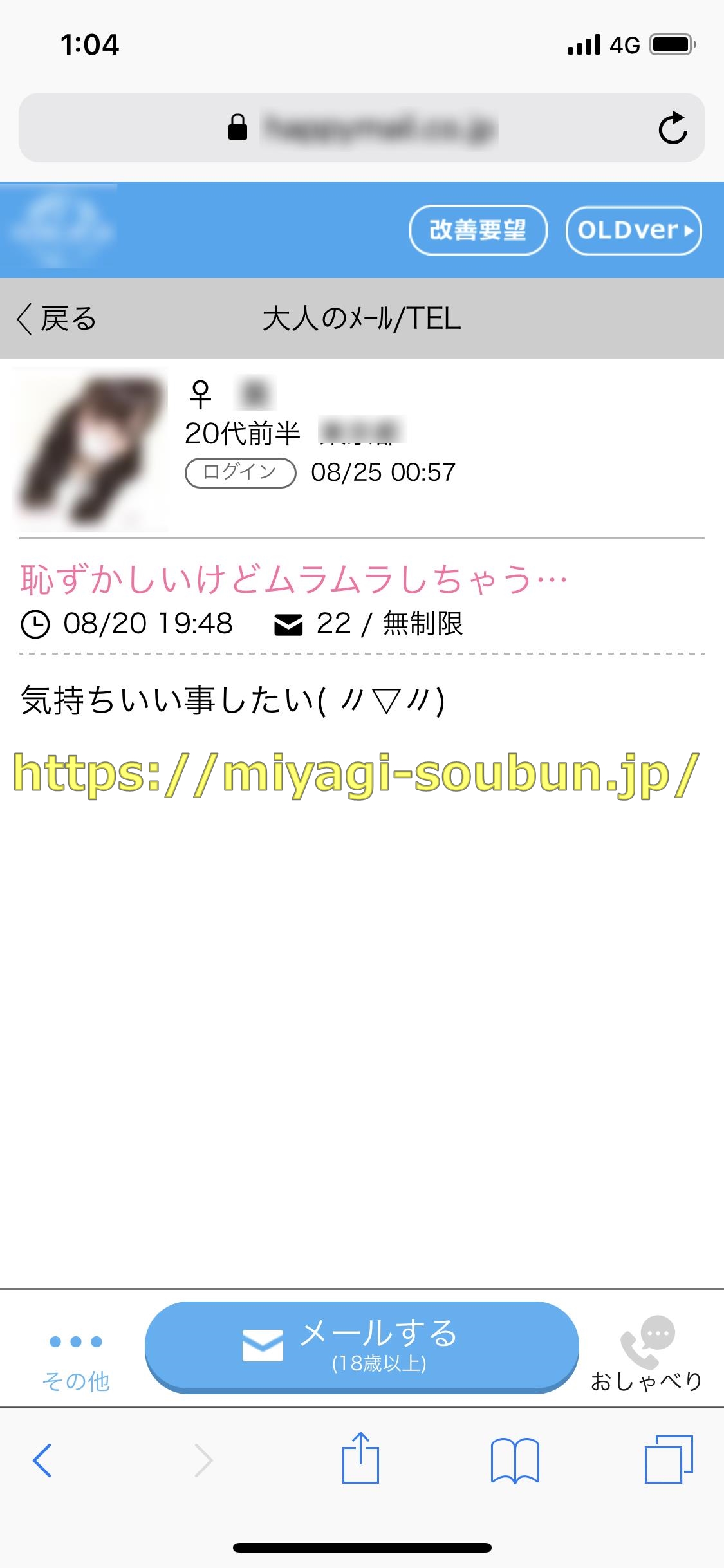 今回もいつもと同じワンパターンで愛知県名古屋市緑区への出張中の仕事の休憩時間に、さりげなくバンバン会える合法の出合い系SNSハピメのスマートフォンアプリで、チャンスアダルト掲示板の【アダルト女性募集】の部門のカキコを見ていると、
